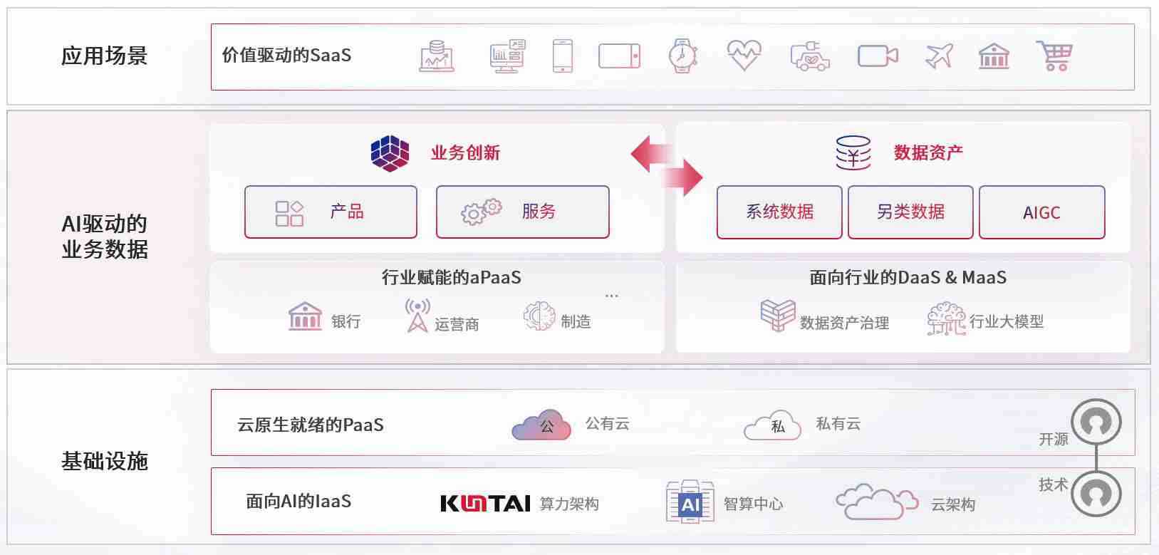 数字时代,,围绕企业数字化转型的关键要素,,尊龙z6数码开创性的提出数云融合战略和技术体系框架,,,,着力在云原生、、、数字原生、、、AI原生和信创产业上架构产品和服务能力,,,为处在不同数字化转型阶段的快消零售、、、汽车、、、金融、、、医疗、、、、政企、、教育、、、、运营商等行业客户提供泛在的敏捷IT能力和融合的数据驱动能力,,,,构建跨界融合创新的数字业务场景和新业务模式,,助力企业级客户建立面向未来的核心能力和竞争优势,,,全面推动社会的数字化、、、、智能化转型升级。。。。